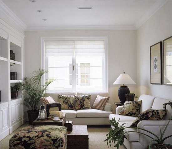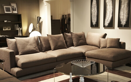 如考慮到其他因素,不得不將沙發(fā)擺放在沒有墻的方位,最好制造一個(gè)人造靠山以補(bǔ)救其不足,像屏風(fēng)、博古架、矮柜、高大的綠色植物等都是不錯(cuò)的選擇。