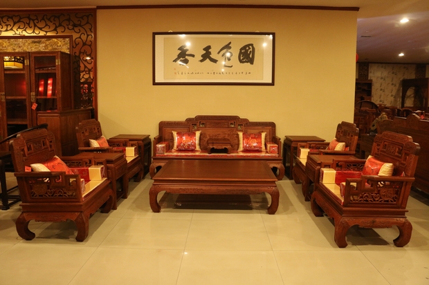 今天,介紹一款我們福林堂紅木的熱銷產品----國色天香沙發(fā)。該款沙發(fā)采用了優(yōu)質的緬甸花梨木作為用材,雕刻精美、寓意吉祥整套沙發(fā)組合有11件套和7件套的組合。11件套的家庭占地面積為3.3M*3.6M、7件套的家庭占地面積為2M*3.6M;一般情況下大多數家庭的客廳橫向的3.6M都是可以滿足沙發(fā)的擺放的紅木家具,那么縱向有4.5M以上的客廳可以選擇11件套的,4.2M以下的就只能考慮7件套的沙發(fā)了。