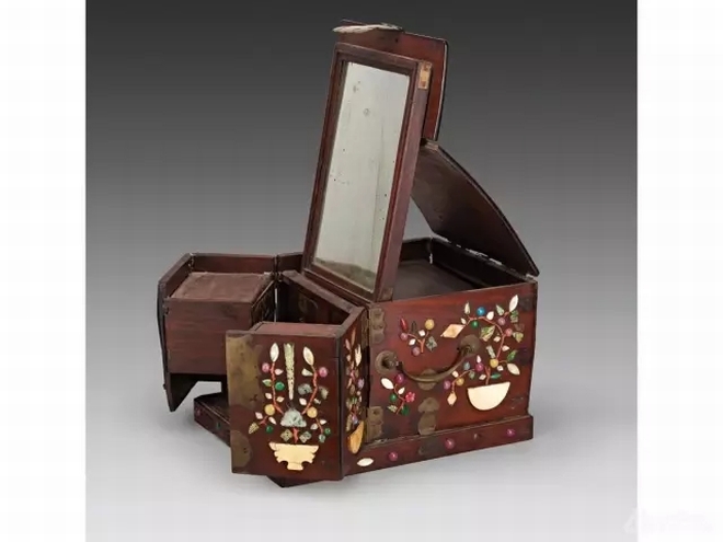 梳妝打扮是上至太后妃嬪,下至小家碧玉都喜愛(ài)的一種本能。而作為皇室,太后、妃嬪們所用的器物又更高端的多。北齊的胡太后,讓沙門靈昭,制造了七寶鏡臺(tái),三十六個(gè)門戶各有一婦人,手中各自拿著鎖匙,只要輕碰其中一個(gè)門戶,這三十六戶一時(shí)全都自行關(guān)閉;若抽出其中一關(guān)的鎖匙,那么其余諸門,盡皆開(kāi)啟,婦人都出現(xiàn)戶前站立。唐朝的馬登封也曾為皇后制妝臺(tái),進(jìn)退、開(kāi)合全自動(dòng),都不須人力,巾櫛(梳篦的總稱)、香粉,依次遞送、循序進(jìn)獻(xiàn)。看見(jiàn)的人,都認(rèn)為是鬼斧神工。